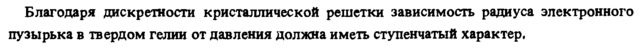 Благодаря дискретности кристаллической решетки зависимость радиуса электронного пузырька в твердом гелии от давления должна иметь ступенчатый характер.