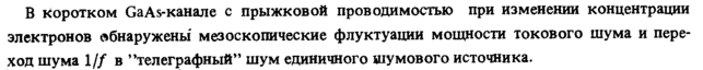 В коротком GaAs-канале с прыжковой проводимостью при изменении концентрации электронов абнаружены' мезоскопические флуктуации мощности токового шума и переход шума 1// в "телеграфный" шум единичного шумового источника.