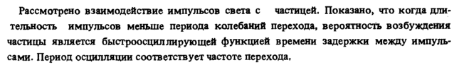 Рассмотрено взаимодействие импульсов света с частицей. Показано, что когда длительность импульсов меньше периода колебаний перехода, вероятность возбуждения частицы является быстроосциллирующей функцией времени задержки между импульсами. Период осцилляции соответствует частоте перехода,