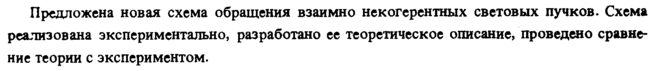 Предложена новая схема обращения взаимно некогерентных световых пучков. Схема реализована экспериментально, разработано ее теоретическое описание, проведено сравнение теории с экспериментом.