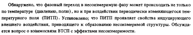 Обнаружено, что фазовый переход в несоизмеримую фазу может происходить не только по температуре (давлению, полю), но и при воздействии периодически изменяющегося температурного поля (ПИТП). Установлено*, что ПИТП проявляет свойства индуцирующего внешнего воздействия, приводящего к образованию несоизмеримой структуры. Обсуждается вопрос о взаимосвязи ВТСП с эффектами несоизмеримости.