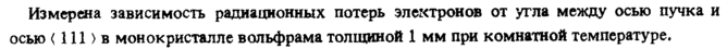 Измерена зависимость радиационных потерь электронов от угла между осью пучка и осью ( 111) в монокристалле вольфрама толщиной 1 мм при комнатной температуре.