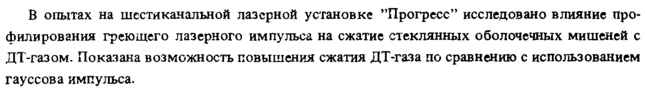 Сжатие стеклянных оболочек с ДТ-газом, профилированным лазерным импульсом