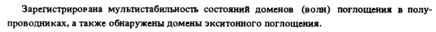 Зарегистрирована мультистабильность состояний доменов (волн) поглощения в полупроводниках, а также обнаружены домены экситонного поглощения.