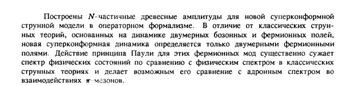 Построены TV-частичные древесные амплитуды для новой суперконформной струнной модели в операторном формализме. В отличие от классических струнных теорий, основанных на динамике двумерных бозонных и фермионных полей, новая суперконформная динамика определяется только двумерными фермионными полями. Действие принципа Паули для этих фермионных мод существенно сужает спектр физических состояний по сравнению с физическим спектром в классических струнных теориях и делает возможным его сравнение с адронным спектром во взаимодействиях зг мезонов.