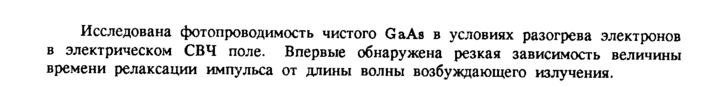 Исследована фотопроводимость чистого GaAs в условиях разогрева электронов в электрическом СВЧ поле. Впервые обнаружена резкая зависимость величины времени релаксации импульса от длины волны возбуждающего излучения.