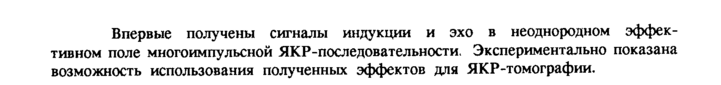 Впервые получены сигналы индукции и эхо в неоднородном эффективном поле многоимпульсной ЯКР-последовательности. Экспериментально показана возможность использования полученных эффектов для ЯКР-томографии.
