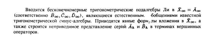 Тригонометрические подалгебры Ли в  , (соответственно  ,  ,  ) и их представления