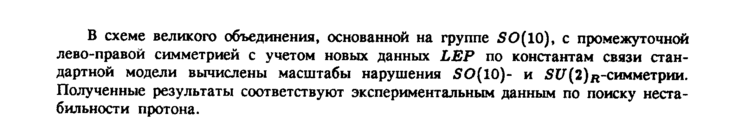 В схеме великого объединения, основанной на группе 50(10), с промежуточной лево-правой симметрией с учетом новых данных LEP по константам связи стандартной модели вычислены масштабы нарушения 50(10)и 5*7(2)Л-симметрии. Полученные результаты соответствуют экспериментальным данным по поиску нестабильности протона.