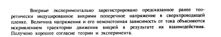 Впервые экспериментально зарегистрировано предсказанное ранее теоретически индуцированное вихрями поперечное напряжение в сверхпроводящей пленке. Величина напряжения и его немонотонная зависимость от тока объясняются искривлением траектории движения вихрей в результате их взаимодействия. Получено хорошее согласие теории и эксперимента.