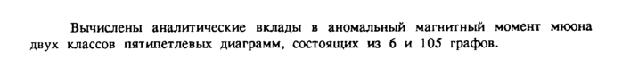 классов пятипетлевых диаграмм, состоящих из 6 и 105 графов.