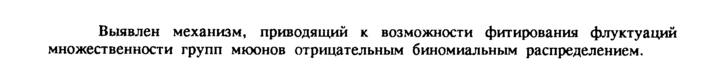 Выявлен механизм, приводящий к возможности фитирования флуктуации множественности групп мюонов отрицательным биномиальным распределением.