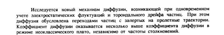 Исследуется новый механизм диффузии, возникающей при одновременном учете электростатических флуктуации и тороидального дрейфа частиц. При этом диффузия обусловлена переходами частиц с запертых на пролетные траектории. Коэффициент диффузии оказывается несколько выше коэффициента диффузии в режиме неоклассического плато, независимо от частоты столкновений.
