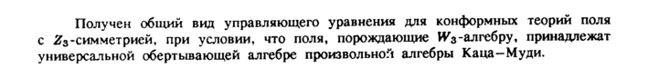 Получен общий вид управляющего уравнения для конформных теорий поля с #з-симметрией, при условии, что поля, порождающие И'з-алгебру, принадлежат универсальной обертывающей алгебре произвольной алгебры Каца-Муди.