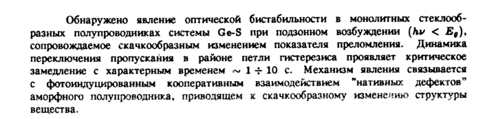 Оптическая бистабильность и критическое замедление в аморфном полупроводнике GeS2