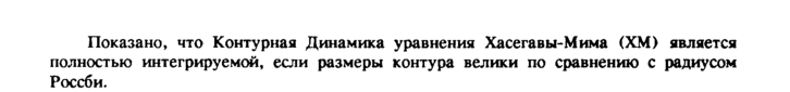 Показано, что Контурная Динамика уравнения Хасегавы-Мима (ХМ) является полностью интегрируемой, если размеры контура велики по сравнению с радиусом Россби.