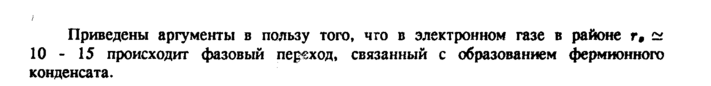 Приведены аргументы в пользу того, чго в электронном газе в районе г, ~ 10 15 происходит фазовый переход, связанный с образованием фермионного конденсата.