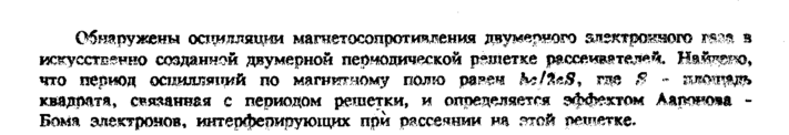 Обнаружены остщдляции магнетосопротияленмя двумерного алгктроншго mm в искусственно созданной двумерной периодической решетке дооодчмтси&& Ня^дачо, что период осииллянкй по магнитному полю щтт hzffaS, где В швощ^дь квадрата, связанная с периодом решетки, и определяется эффектом Аарошва -Бома электронов, интерферирующих при рассеянии на этой решетке.