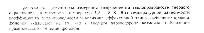 iip^ctatWHb; результаты измерения коэффициента теплопроводности твердого г.араводооода ъ интервале температур \ ,5 8 К. Вид температурной зависимости коэффициента теплопроводности и величина эффективной длины свободного пробега ώοΗΟίίΟκ указываю-! на то, чю в твердом пара водороде возможно наблюдение пуазе ильь^лого течения фоноков.