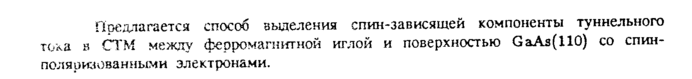 Предлагается способ выделения спин-зависящей компоненты туннельного тока в СТМ между ферромагнитной иглой и поверхностью GaAs(llO) со спин-поляризованными электронами.