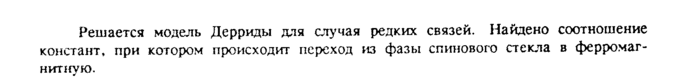 Решается модель Дерриды для случая редких связей. Найдено соотношение констант, при котором происходит переход из фазы спинового стекла в ферромагнитную.