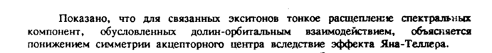 Показано, что для связанных экситонов тонкое расщепление спектральных компонент, обусловленных долин-орбит альным взаимодействием, объясняется понижением симметрии акцепторного центра вследствие эффекта Яна-Теллера.