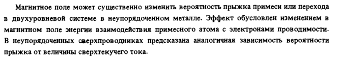 Магнитное поле может существенно изменить вероятность прыжка примеси или перехода в двухуровневой системе в неупорядоченном металле. Эффект обусловлен изменением в магнитном поле энергии взаимодействия примесного атома с электронами проводимости. В неупорядоченных сверхпроводниках предсказана аналогичная зависимость вероятности прыжка от величины сверхтекучего тока.
