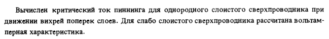 Вычислен критический ток пиннинга для однородного слоистого сверхпроводника при движении вихрей поперек слоев. Для слабо слоистого сверхпроводника рассчитана вольтам -перная характеристика.