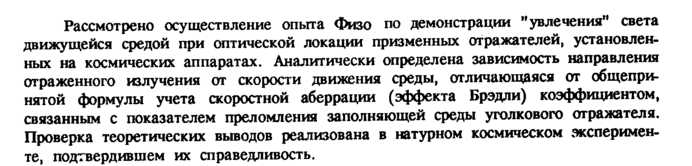 Рассмотрено осуществление опыта Физо по демонстрации "увлечения" света движущейся средой при оптической локации призменных отражателей, установленных на космических аппаратах. Аналитически определена зависимость направления отраженного излучения от скорости движения среды, отличающаяся от общепринятой формулы учета скоростной аберрации (эффекта Брэдли) коэффициентом, связанным с показателем преломления заполняющей среды уголкового отражателя. Проверка теоретических выводов реализована в натурном космическом эксперименте, подтвердившем их справедливость.
