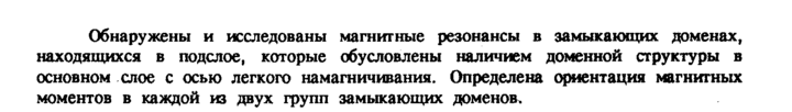 Обнаружены и исследованы магнитные резонансы в замыкающих доменах, находящихся в подслое, которые обусловлены наличием доменной структуры в основном слое с осью легкого намагничивания. Определена ориентация магнитных моментов в каждой из двух групп замыкающих доменов.