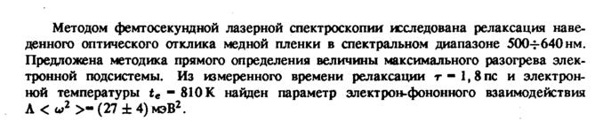 Исследование релаксации электронной температуры медной пленки при возбуждении фемтосекундными лазерными импульсами