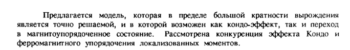 Предлагается модель, которая в пределе большой кратности вырождения является точно решаемой, и в которой возможен как кондо-эффект, так и переход в магнитоупорядоченное состояние. Рассмотрена конкуренция эффекта Кондо и ферромагнитного упорядочения локализованных моментов.