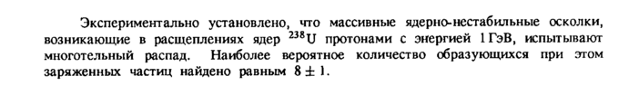 Экспериментально установлено, что массивные ядерно-нестабильные осколки, возникающие в расщеплениях ядер 238U протонами с энергией 1 ГэВ, испытывают многотельный распад. Наиболее вероятное количество образующихся при этом заряженных частиц найдено равным 8 ± 1.