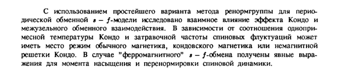 С использованием простейшего варианта метода ренормгруппы для периодической обменной в — /-модели исследовано взаимное влияние эффекта Кондо и межузельного обменного взаимодействия. В зависимости от соотношения однопри-месной температуры Кондо и затравочной частоты спиновых флуктуаций может иметь место режим обычного магнетика, кондовского магнетика или немагнитной решетки Кондо. В случае "ферромагнитного" β — /-обмена получены явные выражения для момента насыщения и перенормировки спиновой динамики.