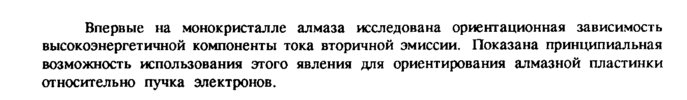 Впервые на монокристалле алмаза исследована ориентационная зависимость высокоэнергетичной компоненты тока вторичной эмиссии. Показана принципиальная возможность использования этого явления для ориентирования алмазной пластинки относительно пучка электронов.