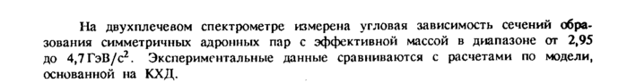 На двухплечеаом спектрометре измерена угловая зависимость сечений образования симметричных адронных пар с эффективной массой в диапазоне от 2,95 до 4,7ГэВ/с2. Экспериментальные данные сравниваются с расчетами по модели, основанной на КХД.