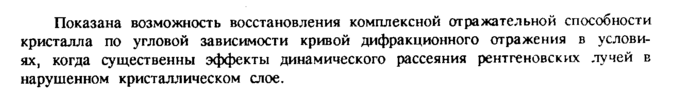 Показана возможность восстановления комплексной отражательной способности кристалла по угловой зависимости кривой дифракционного отражения в условиях, когда существенны эффекты динамического рассеяния рентгеновских лучей в нарушенном кристаллическом слое.