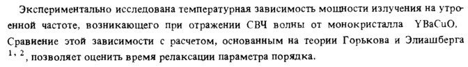 Экспериментально исследована температурная зависимость мощности излучения на утроенной частоте, возникающего при отражении СВЧ волны от монокристалла YBaCuO, Сравнение этой зависимости с расчетом, основанным на теории Горькова и Элиашберга *' 2, позволяет оценить время релаксации параметра порядка.