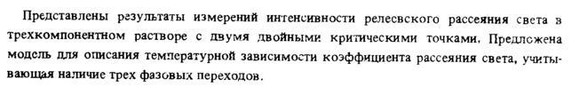 Представлены результаты измерений интенсивности релесвского рассеяния света з трехкомпонентном растворе с двумя двойными критическими точками, Предложена модель для описания температурной зависимости коэффициента рассеяния света, учитывающая наличие трех фазовых переходов.