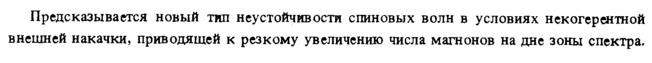 Предсказывается новый тип неустойчивости спиновых волн в условиях некогерентной внешней накачки, приводящей к резкому увеличению числа магнонов на дне зоны спектра.