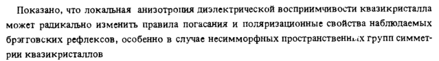 Показано, что локальная анизотропия диэлектрической восприимчивости квазикристалла может радикально изменить правила погасания и поляризационные свойства наблюдаемых брэгговских рефлексов, особенно в случае несимморфных пространственных групп симметрии квазикристаллов