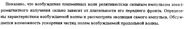 Показано, что возбуждение плазменных волн релятивистски сильным импульсом электромагнитного излучения сильно зависит от длительности его переднего фронта. Определены характеристики возбуждаемой волны и рассмотрена эволюция самого импульса. Обсуждается возможность ускорения частиц полем возбуждаемой продольной волны.