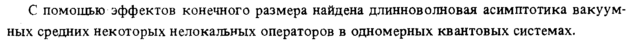 С помощью эффектов конечного размера найдена длинноволновая асимптотика вакуумных средних некоторых нелокальных операторов в одномерных квантовых системах.