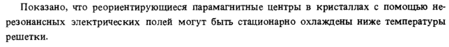 Показано, что реориентирующиеся парамагнитные центры в кристаллах с помощью нерезонансных электрических полей могут быть стационарно охлаждены ниже температуры решетки.