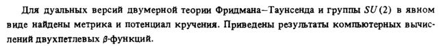 Для дуальных версий двумерной теории Фридмана-Таунсенда и группы SU (2) в явном виде найдены метрика и потенциал кручения. Приведены результаты компьютерных вычислений двухпетлевых ^-функций.