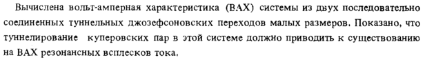 Вычислена вольт-амперная характеристика (ΒΑΧ) системы из двух последовательно соединенных туннельных джозефсоновских переходов малых размеров, Показано, что туннелирование куперовских пар в этой системе должно приводить к существованию на ΒΑΧ резонансных всплесков тока,