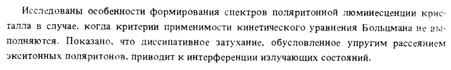 Исследованы особенности формирования спектров поляритонной люминесценции кристалла в случае, когда критерии применимости кинетического уравнения Больцмана не выполняются. Показано, что диссипативное затухание, обусловленное упругим рассеянием экситонных поляритонов, приводит к интерференции излучающих состояний.