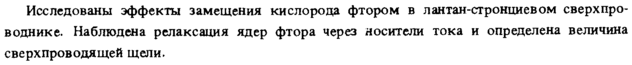 Исследованы эффекты замещения кислорода фтором в лантан-стронциевом сверхпроводнике. Наблюдена релаксация ядер фтора через носители тока и определена величина сверхпроводящей щели.