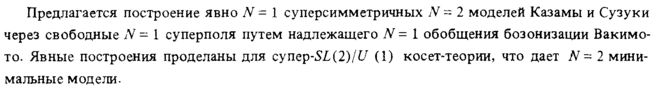 Предлагается построение явно N = X суперсимметричных Ν ~ 2 моделей Казамы и Сузуки через свободные N = I суперполя путем надлежащего N= 1 обобщения бозонизации Вакимо-то. Явные построения проделаны для cynep-5L(2)/£/ (1) косет-теории, что дает N ~2 минимальные модели.