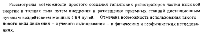 Рассмотрены возможности простого создания гигантских регистраторов частиц высокой энергии в толщах льда путем внедрения и размещения приемных станций дистанционным лучевым воздейтсвием мощных СВЧ лучей. Отмечена возможность использования такого нового вида движения лучевого льдоплавания в физических и геофизических исследованиях.